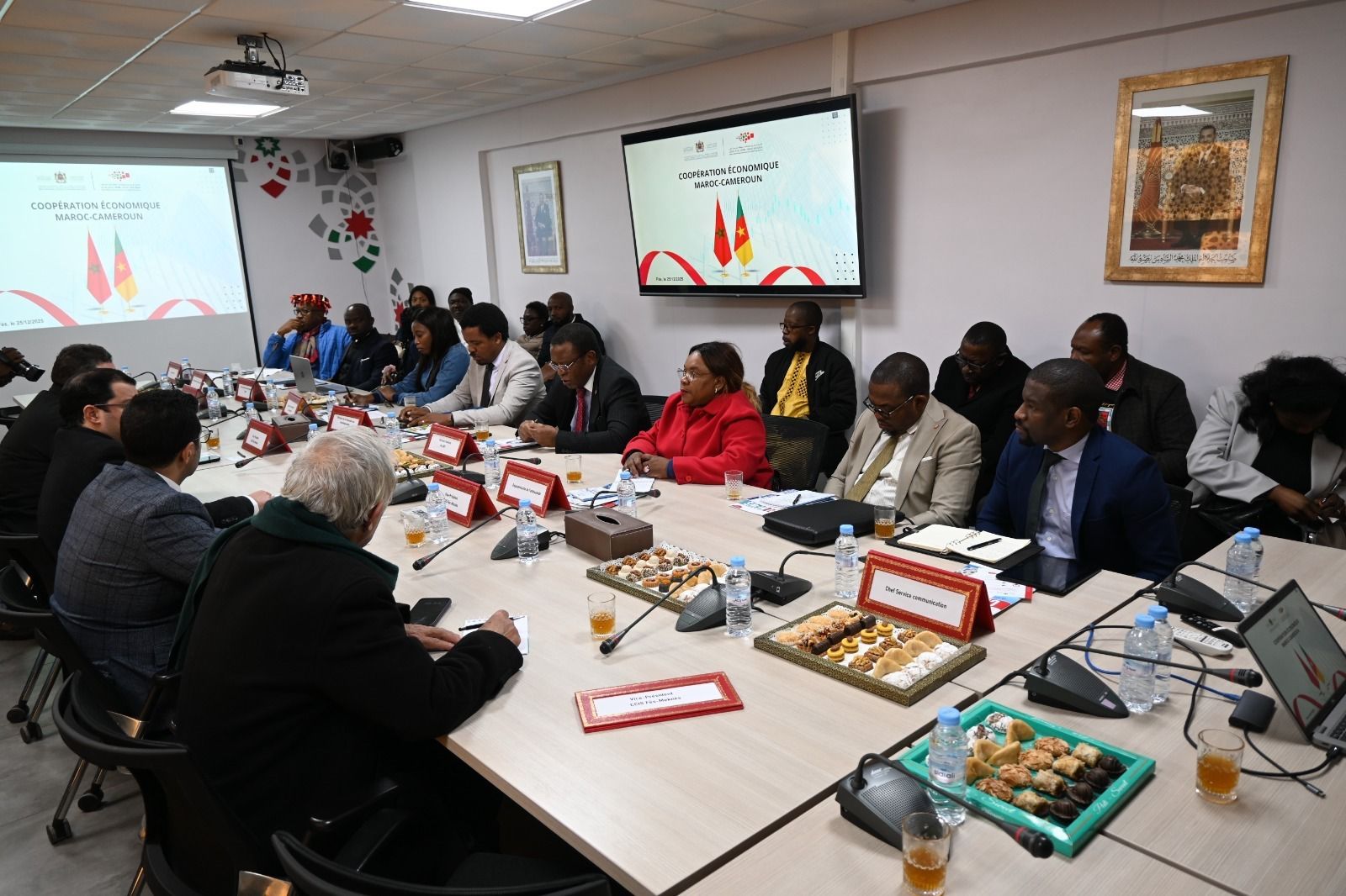 وجرى الاجتماع المنعقد يوم أول أمس الخميس، في إطار فعاليات الأيام الاقتصادية للكاميرون في المغرب، والتي نظمت على هامش النسخة الخامسة والثلاثين من بطولة كأس الأمم الأفريقية (كان المغرب 2025).